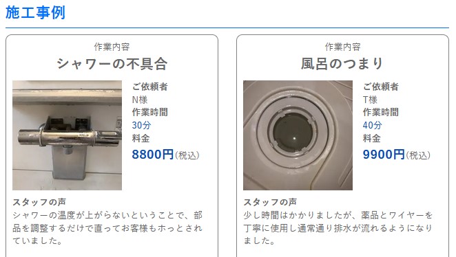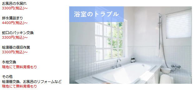 京都府で対応可能なお風呂(浴室)の修理サービスとなります。その他のトラブルはお気軽に受付スタッフまでご相談ください。
